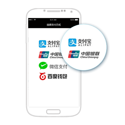 反叛支付平台,为iOS/Android原生/H5 App提供支付解决方案:支持微信支付、支付宝支付、银联手机支付、百度钱包等。